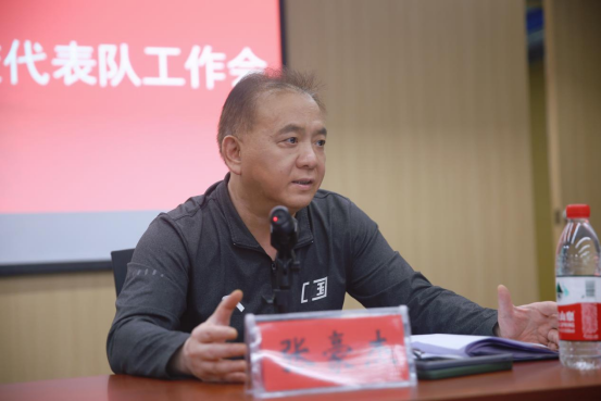 围绕代表队训练竞赛工作,训练竞赛处处长张豪杰按照项目布局、工作规划、工作措施等方面对代表队教练员和运动员提出四点要求:一要以作风建设为导向,强化“三风建设”,围绕严谨的思想作风、过硬的管理作风、顽强的训练作风,打造“武体铁军”。二要以科学化训练为核心,提升教练员执教能力,全面遵循“三从一大”的科学化训练原则,革新训练理念、更新训练方法、创新训练手段。三要以军事化管理为抓手,提高运动队品质修养,提高政治站位,强化纪律建设、制度建设和团队建设,增强运动员自律能力,克服功利性与攀比性等社会不良习气。四要以指标考核为依据,全面提升训练质量,制定科学有效的年度及阶段性训练竞赛计划,明确年度及阶段性训练竞赛目标和考核指标,保质保量完成训练竞赛任务。