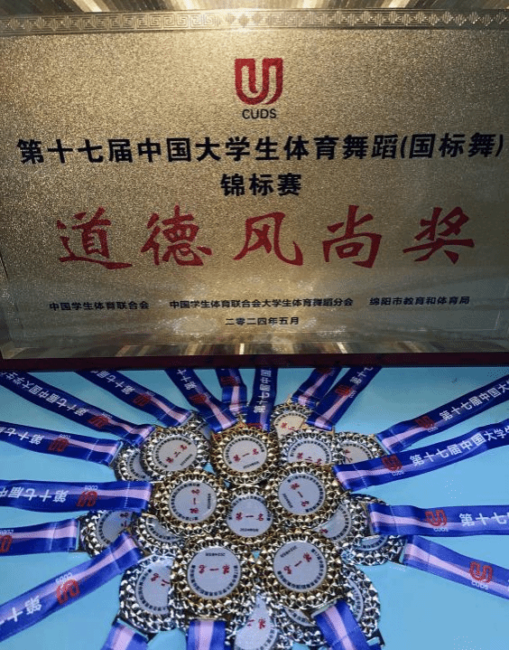 我校体育舞蹈代表队在教练员黄鹏、刘嘉等老师的带领下,克服困难,顽强拼搏,在所参加的丙C组(最高专业组别)系列赛事中,出征的8对运动员全部入围参赛组别的决赛,最终,武汉体育学院代表队获得了3个冠军、7个亚军的成绩,同时经评选后被赛事组委会授予“道德风尚奖”“道德风尚教练员”和“道德风尚运动员”的奖项及称号。